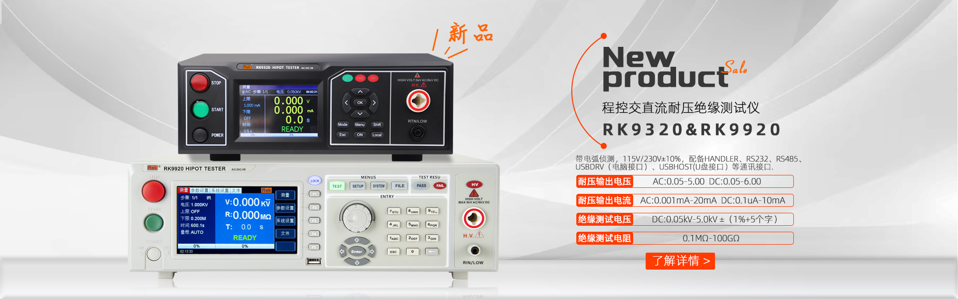 RK9975-10/RK9975-10A/RK9975-10B程控超高压测试仪RK9975-10: AC 输出电压:(0.10~10.00)kV 输出功率:1000VA(10.0kV 100mA) DC 输出电压:(0.10~10.00)kV 输出功率:500VA(10.0kV 50mA) IR(定制功能) 输出电压:0.10KV-5.0KV 测试精度:± (3%+5 个字) RK9975-10A: AC 输出电压:(0.10~10.00)kV 输出功率:1000VA(10.0kV 100mA) DC 输出电压:(0.10~10.00)kV 输出功率:500VA(10.0kV 50mA) RK9975-10B: AC 输出电压:(0.10~10.00)kV 输出功率:1000VA(10.0kV 100mA)RK9975-10/RK9975-10A/RK9975-10B程控超高压测试仪 -